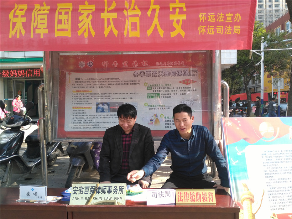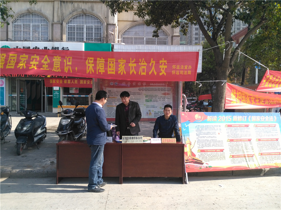 2017年4月,安徽百舜律师事务所积极参与怀远县司法局、怀远县法制宣传办事处组织的“国家安全月”法制宣传活动!